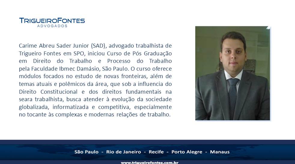 SAD iniciou pós gradução em direito do trabalho e processo do trabalho!