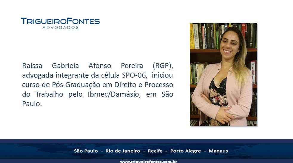 RGP iniciou pós gradução em direito e processo do trabalho!